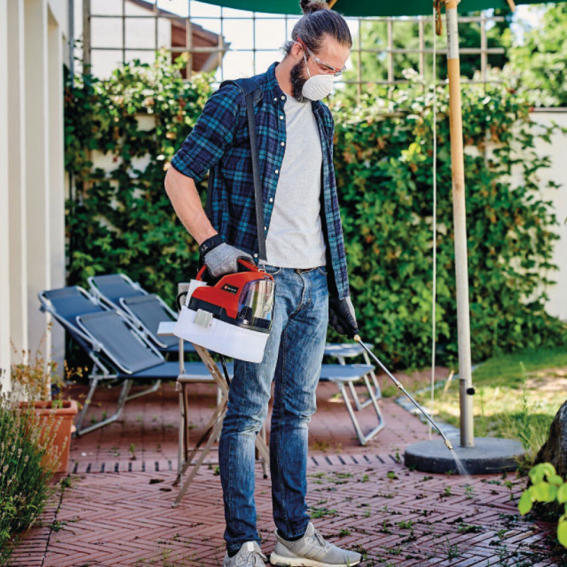 El pulverizador inalámbrico Einhell GE-WS 18/35 Li-Solo ayuda en la distribución de agentes fitosanitarios, fertilizantes y de control de malezas y es miembro de la familia flexible Power X-Change.