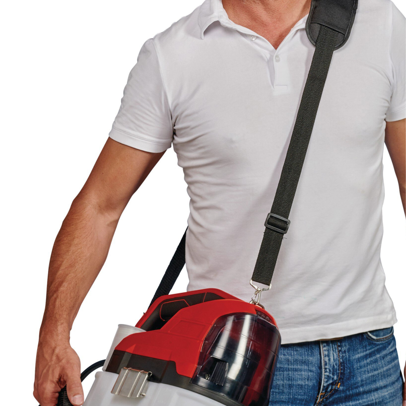 La lanza pulverizadora telescópica está hecha de acero inoxidable y está equipada con un botón de control bloqueable. La correa de transporte acolchada elimina la tensión del trabajo. La tapa de la batería ofrece protección contra salpicaduras de agua.